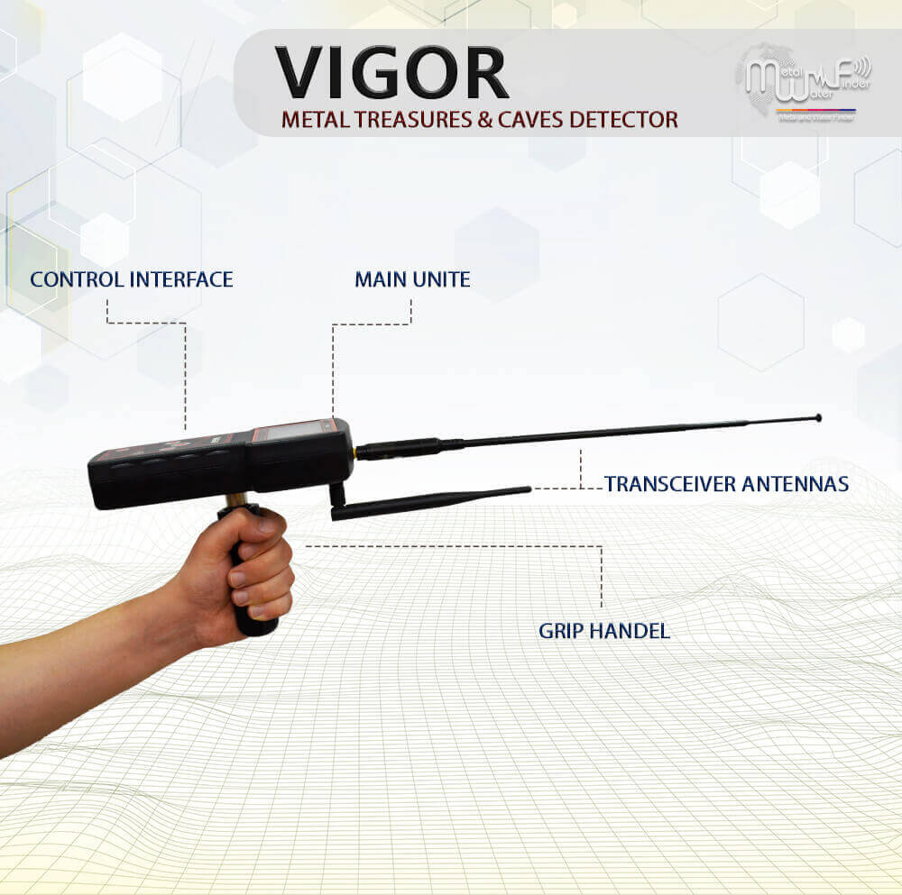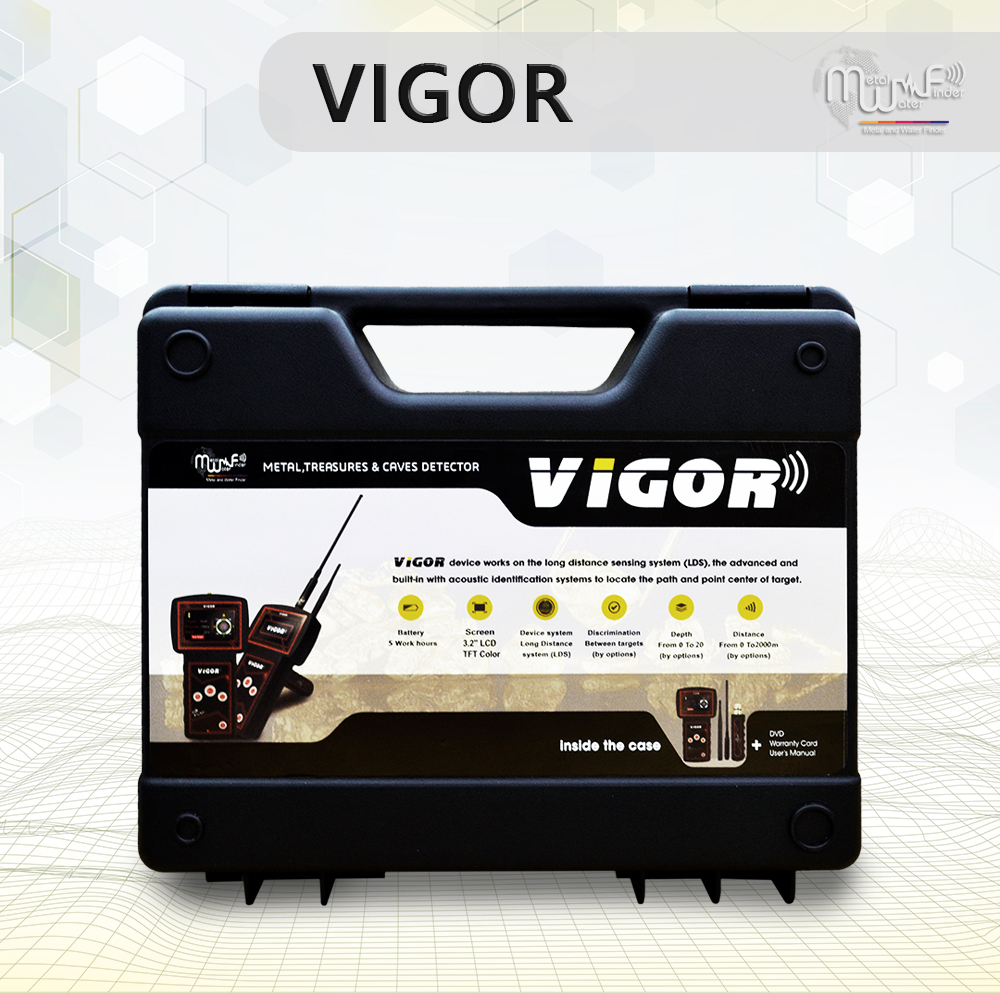 the new and advanced device to detect gold, treasures, and cavity, vigor device has modern features and characteristics that enable it to monitor underground targets accurately and effectively, The high sensitivity to detect the target speedily, accurate verification of the target’s location, and the acoustic indicators issued to determine the target’s location path are one of the most important of these features, In addition, the digital compass on the device screen, which shows directions and the target path as well, The detection depth of this device reaches 20 m and can detect targets from a distance of 2000 m circular.